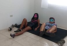 Latin stepsisters twist acrobatically flashing wet vaginas and sensual asses teasingly