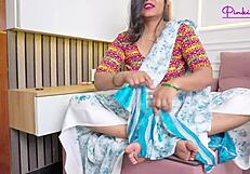 Stepsister's Hairy Pussy Creampied by Stepbrother in Tight Saree