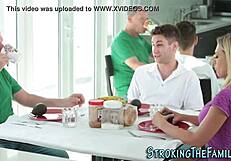styvmamma greppar min monsterkuk under bordet för tabu sug och rakad fitta-knull