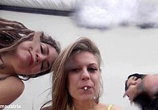 Imagine these bold girls drenching you in their playful spit shower