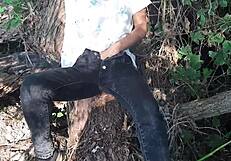 public sex unfolds in the forest with a stranger. big ass gets a messy pussy cumshot.