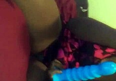 Ebony babe enjoys solo play with toys in homemade setting