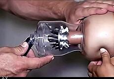 Muscular bodybuilder gets milked like an animal completely