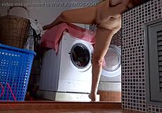 Stuck in the washing machine, stepsis says ok, I'm getting my dick out for a hard fuck.