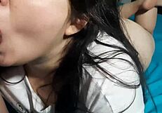 Petite asian's wet pussy lips get sloppy domination reward
