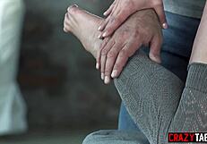 Alyssa reece worships renato huge cock with feet then takes doggystyle pussy pounding