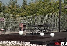 Whose bubble ass gets banged outdoors by huge bbc in 3some?
