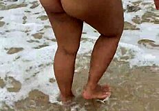 Sexy asian bbw milf wife bares big natural tits and fat ass nude on public beach