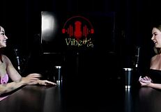 karmella sutra and rihannan sky, two tattooed lesbians with dark hair, penetrate each other with sex toys