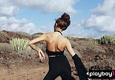 damn this gorgeous brunette taya vais strips perfect tits in desert