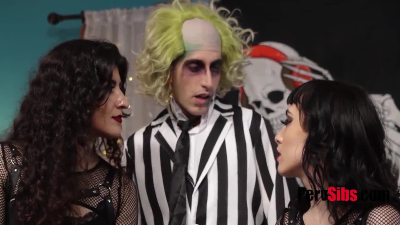 Stepsisters unleash pussy juice in Beetlejuice Halloween threesome!