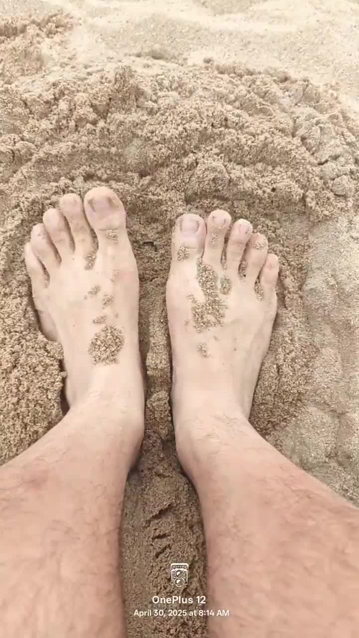 Sand hides bare feet's secret sensory fetish tease