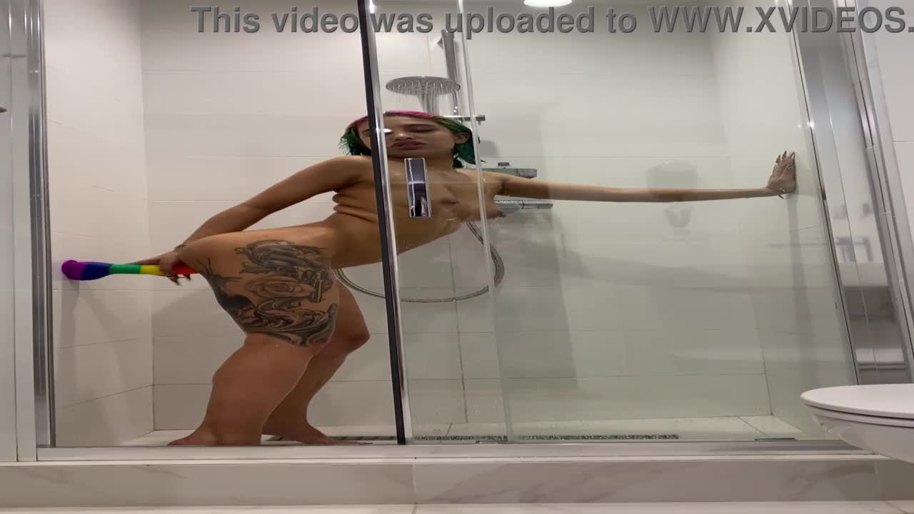 Dildo Anal Play and Pissing in Steamy Shower Scene.