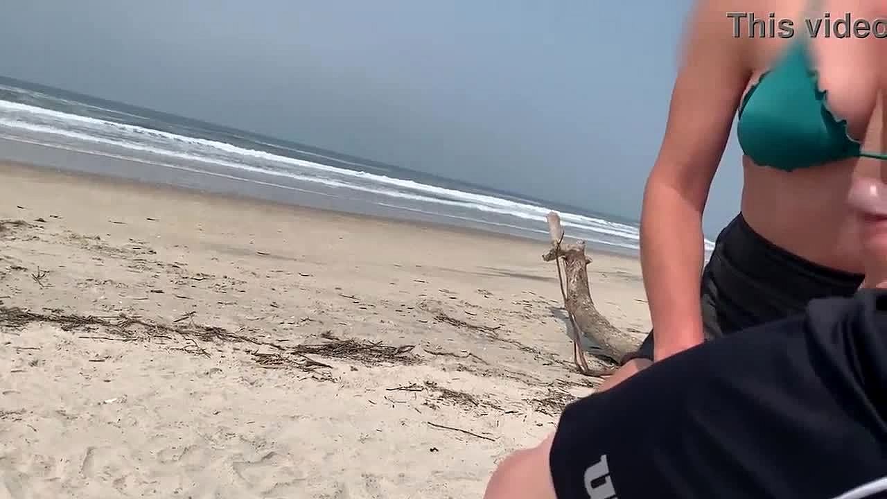 Public beach handjob milf pumps big cock to cumshot explosion