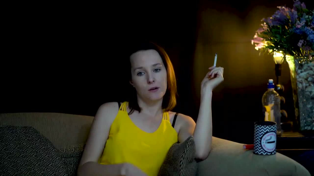 Brunette Sucks Cigarette While Watching Voyeur