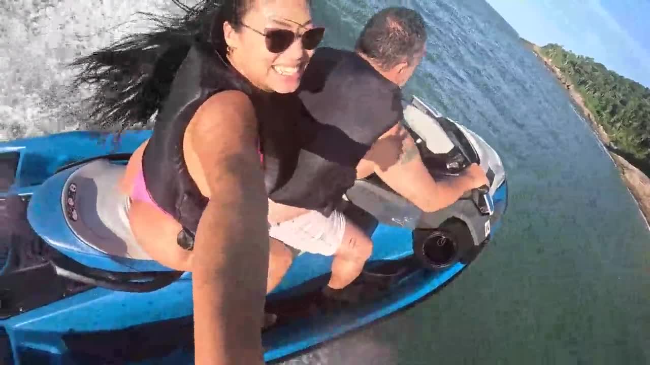 Insane! Latina Teen's First Time on Jet Ski Turns Wild at Guarujá Beach!