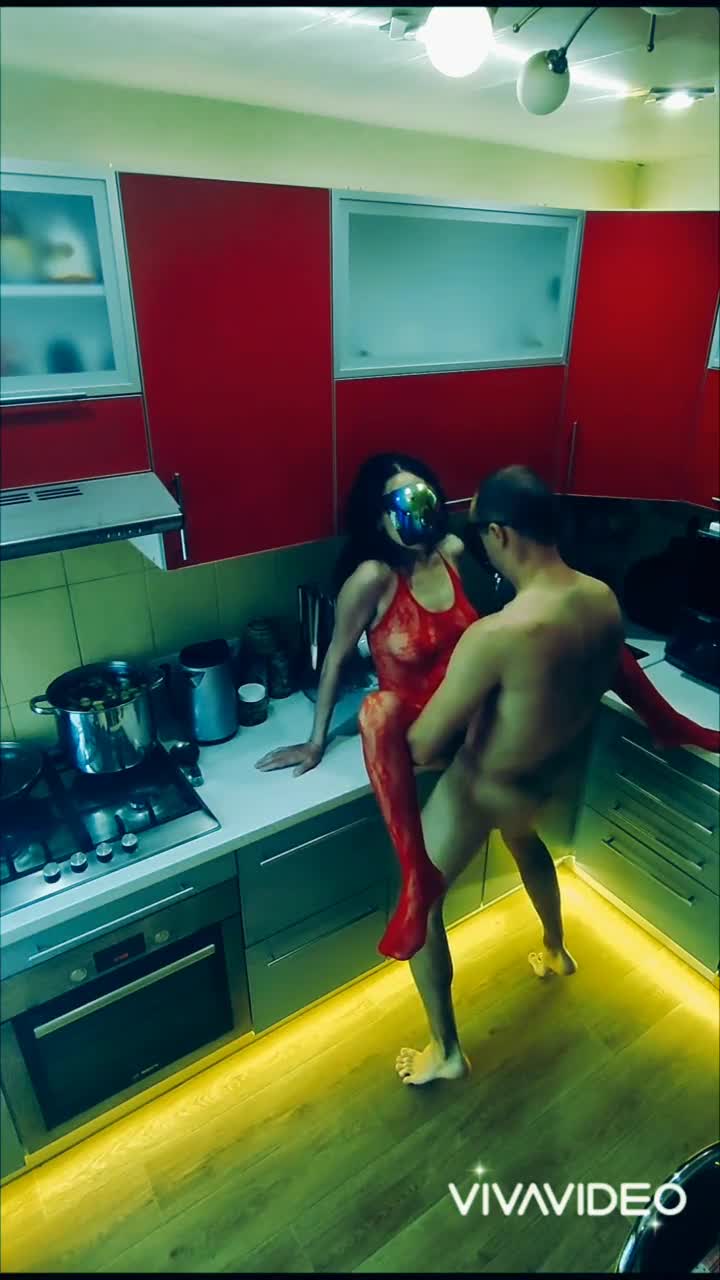 my wife in black fishnets bends over and rides me hard in the kitchen.
